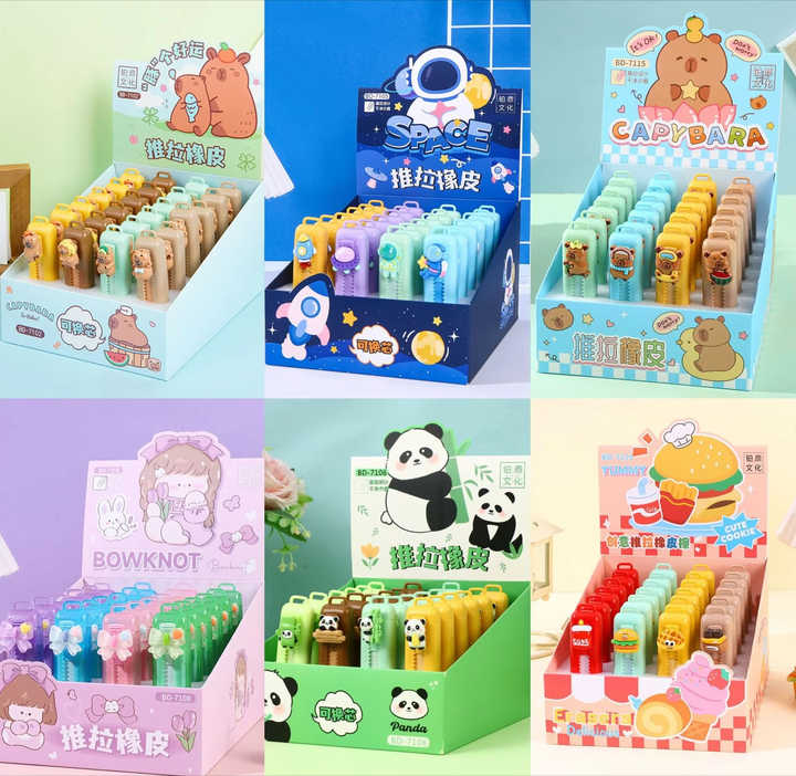 Gomma da cancellare creativa push-pull per studenti, 4B, per disegno e test, simpatica gomma a spinta a forma di cartone animato, all'ingrosso