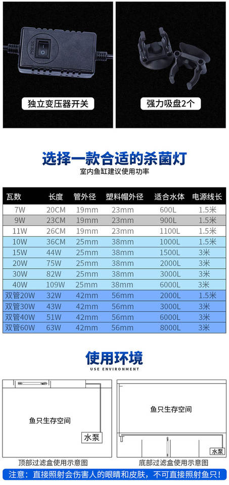 Creatore 7/9/ 11/ 10/15W acquario UV luce pulita sommergibile stagno di illuminazione impermeabile pesci per vasca
