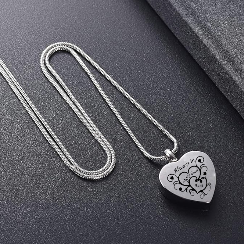 Cremation Jewelry Heart-shaped Urn Necklace Forever in My Heart Snake Chain Pendant Commemorative Ashes Souvenir