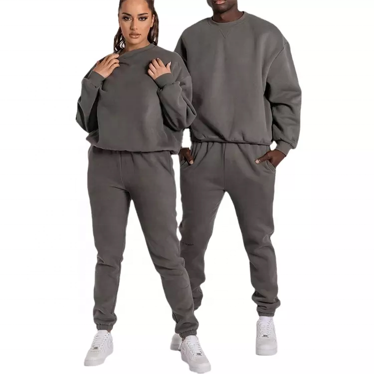 Crew Neck Cotton Sweat Suit Sportswear Jogger Men Women Black 2 Pcs Tracksuit Unisex Tracksuits Sweatsuit Set Custom logo