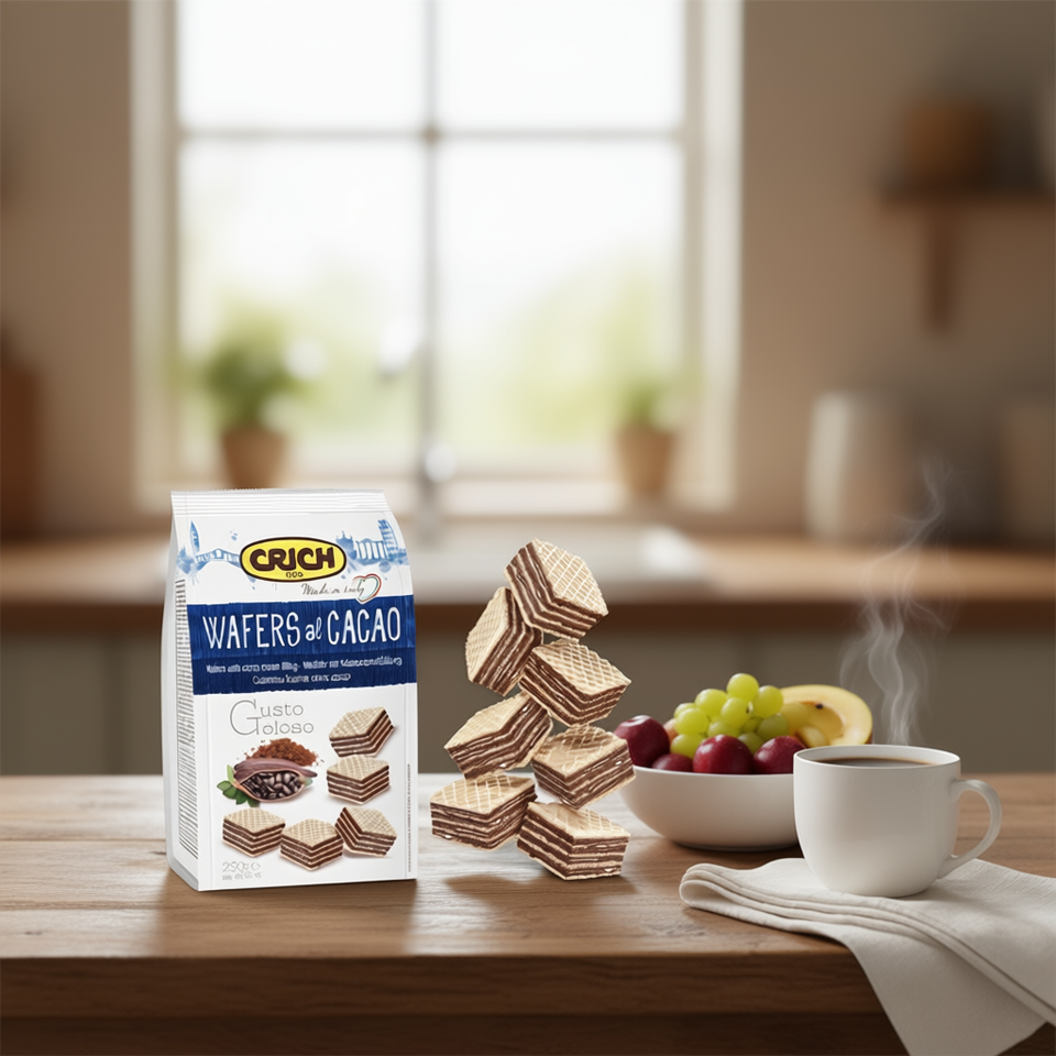Biscotti Wafer al Cioccolato Crich Croccanti e Dolci 250g 10 Confezioni in Sacchetto