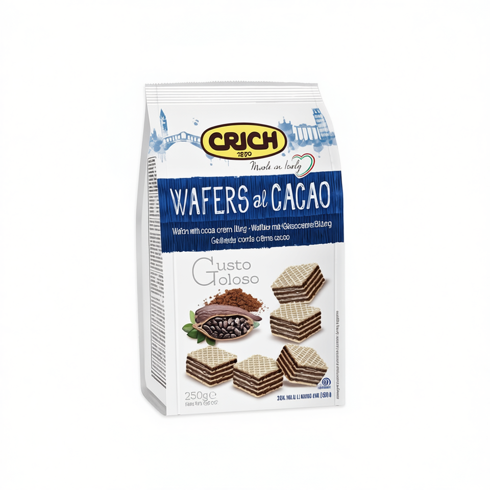 Wafer al Cioccolato Crich, Biscotti Croccanti Quadrati, Processo di Stampaggio, 250g, 10 Confezioni in Sacchetto