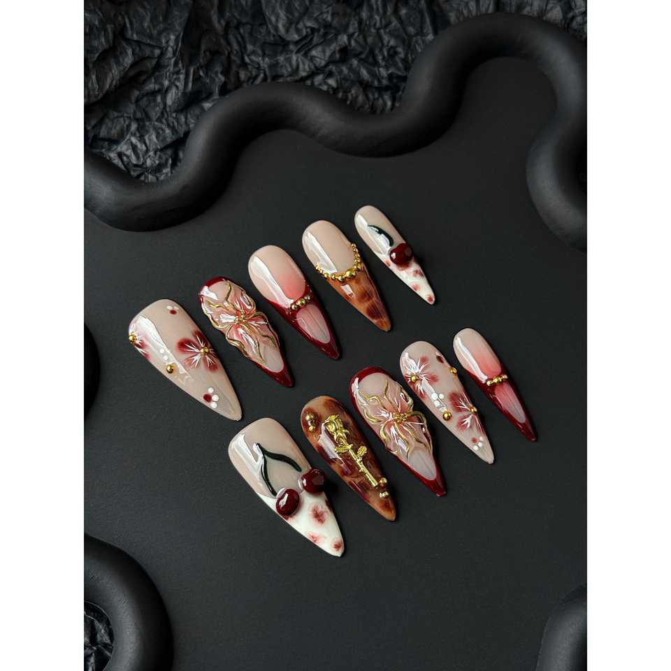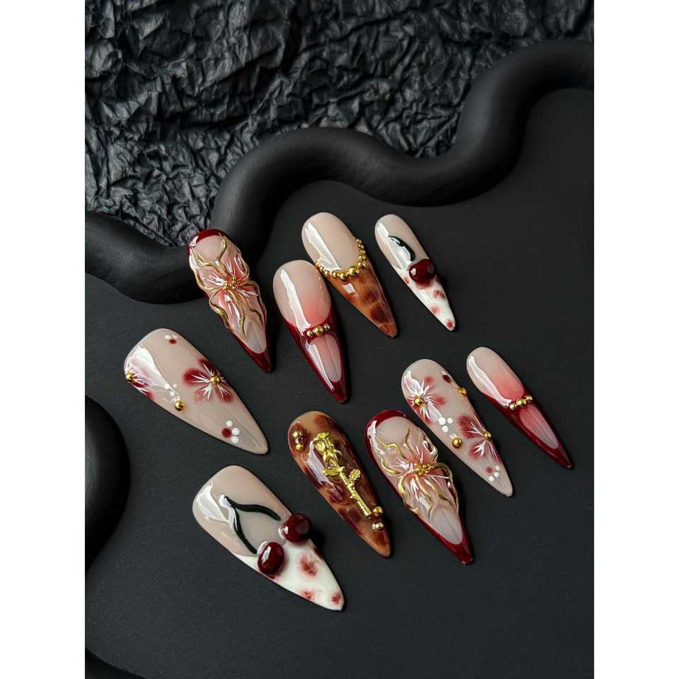 Crimson Sakura al tramonto per nail art press-on