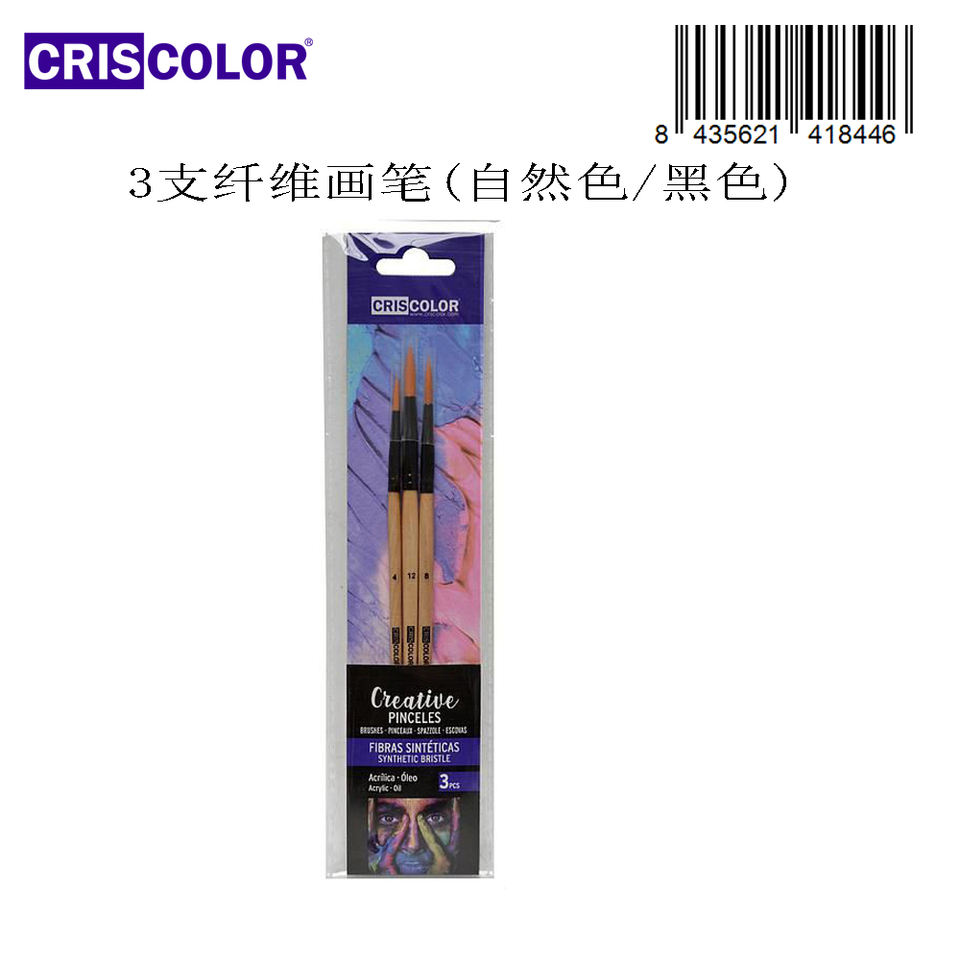 Set di pennelli in fibra Criscolor, 12 pezzi, pennelli per pittura artigianale neri naturali, in fibra sintetica, per pittura, forniture artistiche fai da te