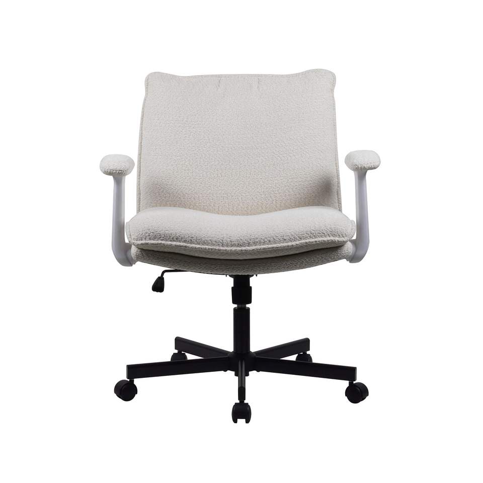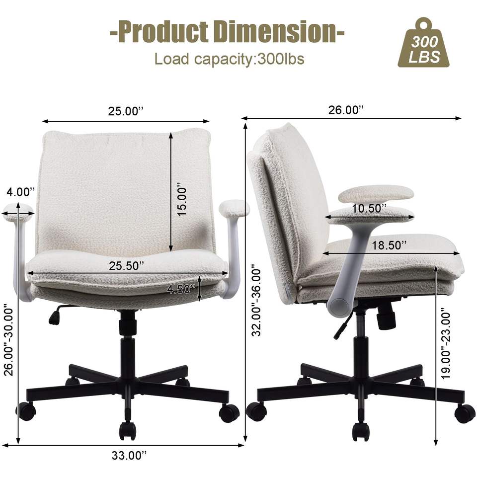 Sedia da Ufficio con Telaio Incrociato e Rotelle, Design Ergonomico a Gambe Incrociate, Braccioli Pieghevoli, Seduta Ampia Imbottita