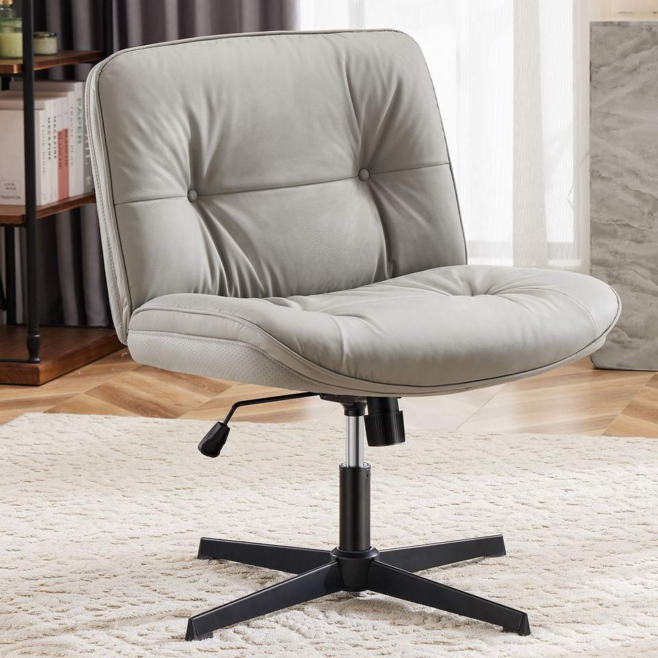 Sedia da Ufficio Senza Braccioli con Gambe Incrociate, Seduta Larga, Girevole, Regolabile in Altezza, Senza Ruote, Confortevole
