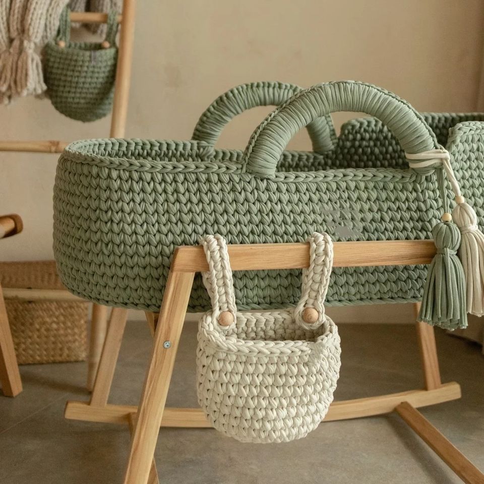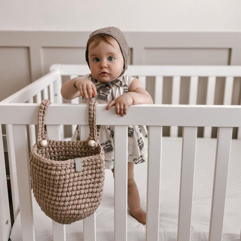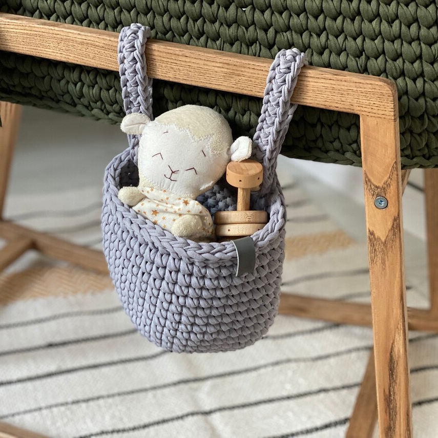 Organizer tascabile per culla all'uncinetto custodia per giocattoli e cestini appesi per comodino