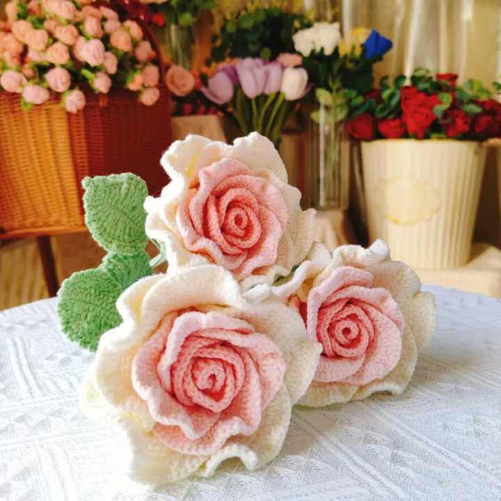 Fiori uncinetto singoli grandi rose rosse fiori artificiali fatti a manoNome