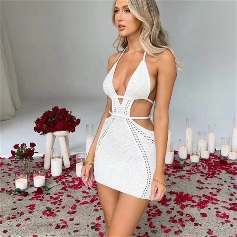 Crocheted Knit Club Dresses Elegant Cover-Up for Women