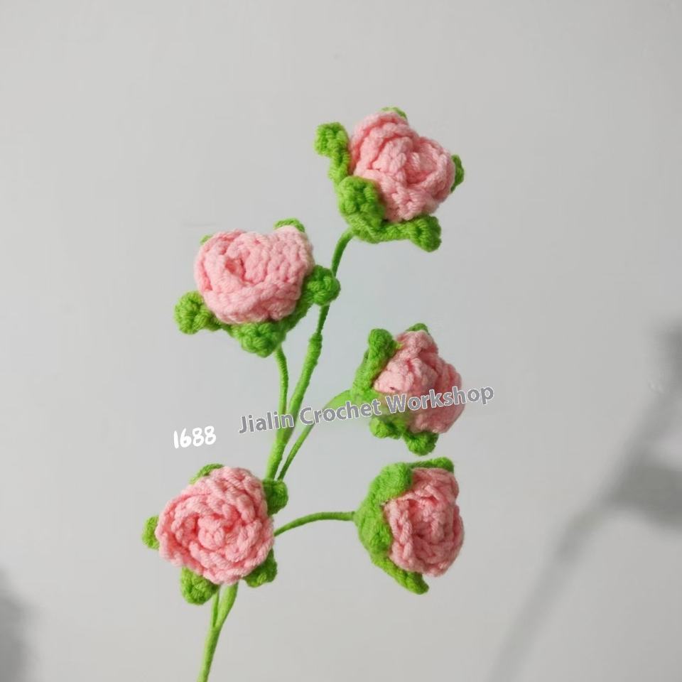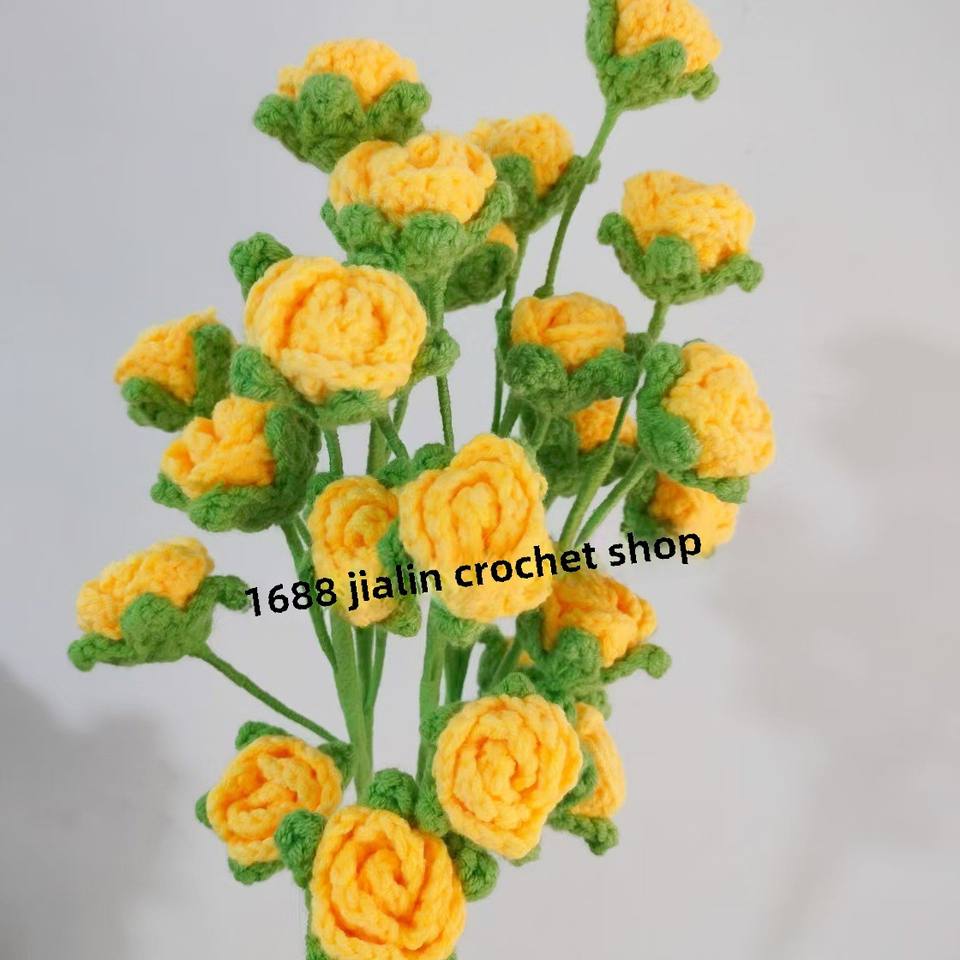 In lana all'uncinetto a 5 teste a bolle di rosa Bouquet lavorato a maglia fiore di natale artificiale decorazione per la casa stile letterario