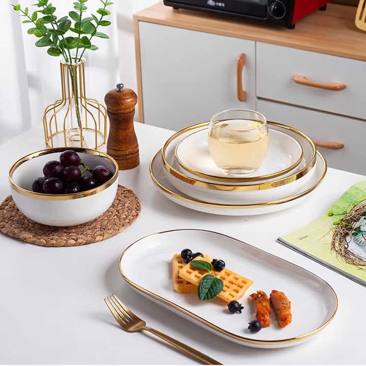 Stoviglie stoviglie stoviglie ceramica stoviglie per cucina e casa bianco con trita in oro nordico di lusso 32 pz porcellana Set cena