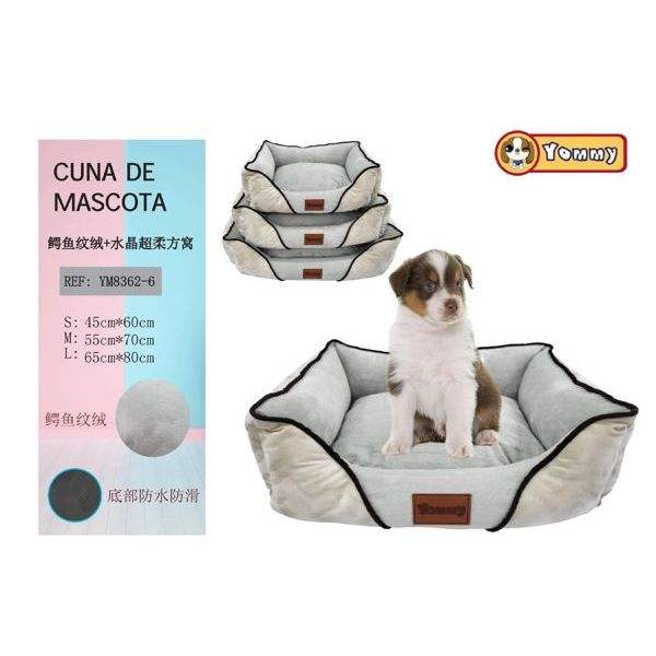 Crocodile Patterned Velvet and Crystal Super Soft Square Nest Beige Three-Piece Pet Bed Set