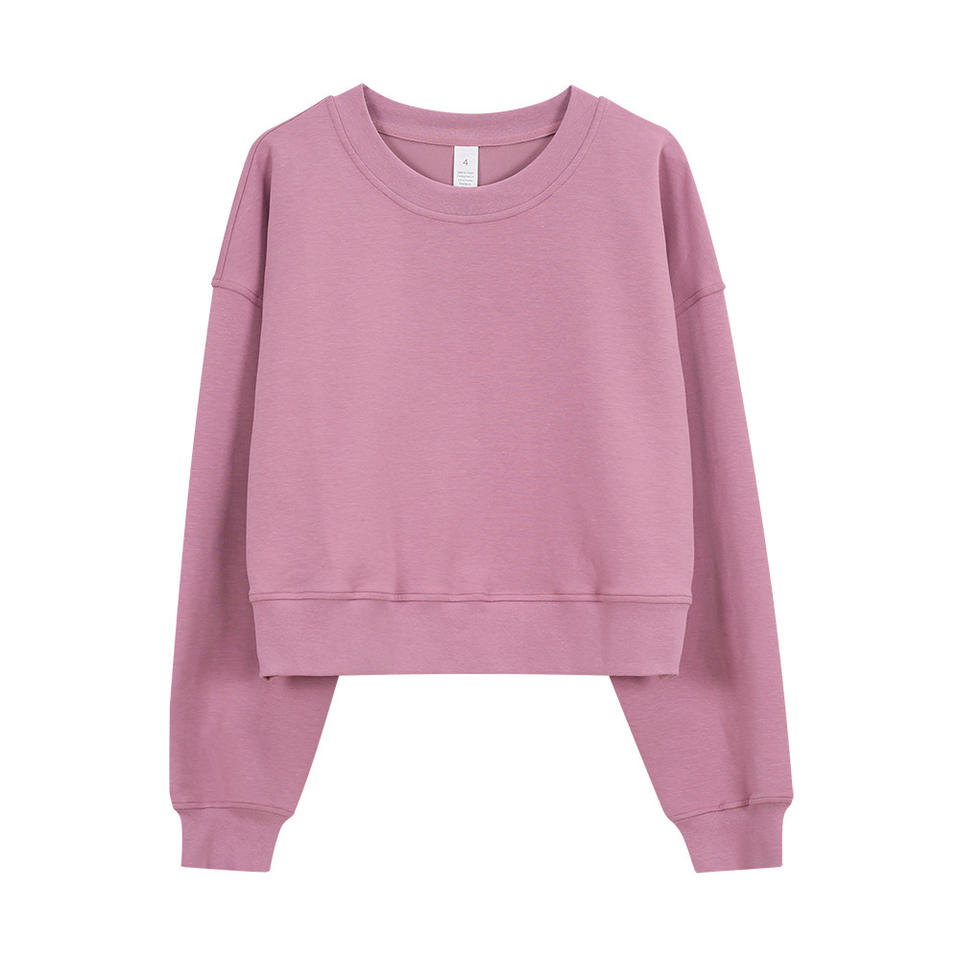 Crop Sweatshirt Yoga Wear Women's Cotton XXL Crew Collar Regular Sleeve Loose Fit Sports Wear Brand Logo Custom Sweatshirts