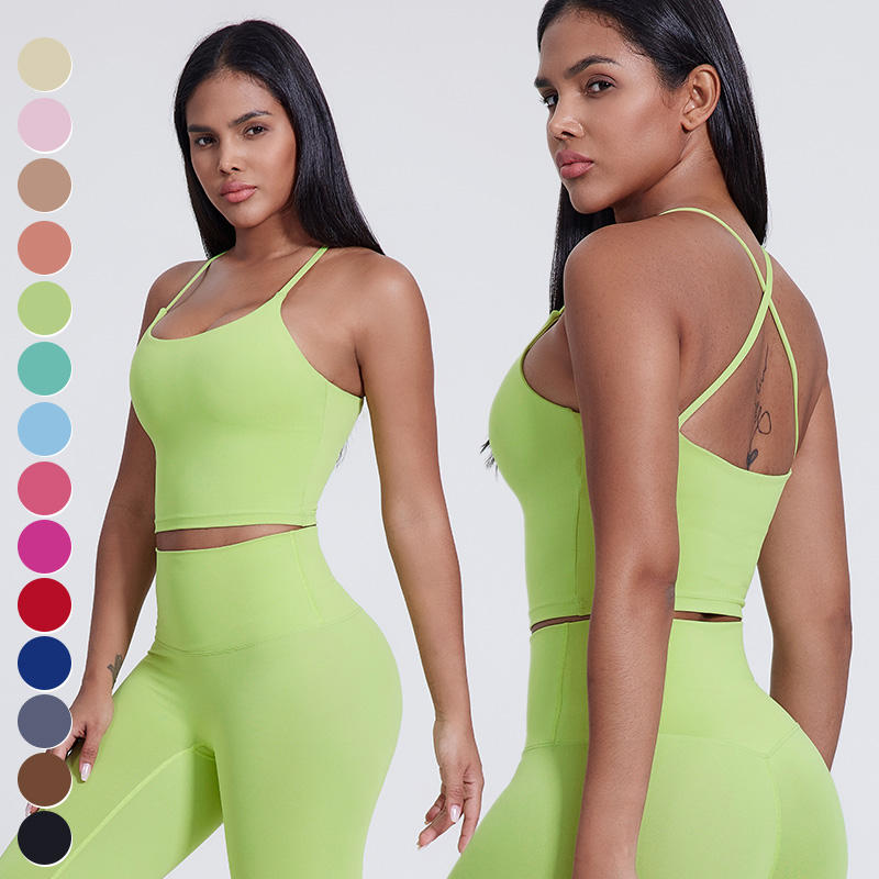 Canotta da Yoga con retro incrociato e traspirante veloce reggiseno da corsa da palestra gilet corto senza maniche canottiera sportiva Yoga canotta da donna