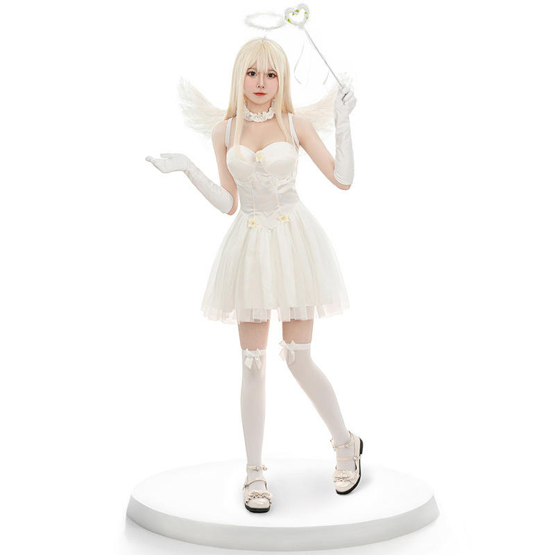 Costume da Angelo Bianco per Donna Adulta Halloween 2025, Mini Abito in Tulle per Spettacoli Teatrali