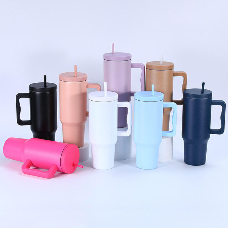 Transfrontaliera da 40 once con manico per ghiaccio tiranno tazza isolata per auto in acciaio inossidabile 304 tazza per acqua estiva per auto per regali