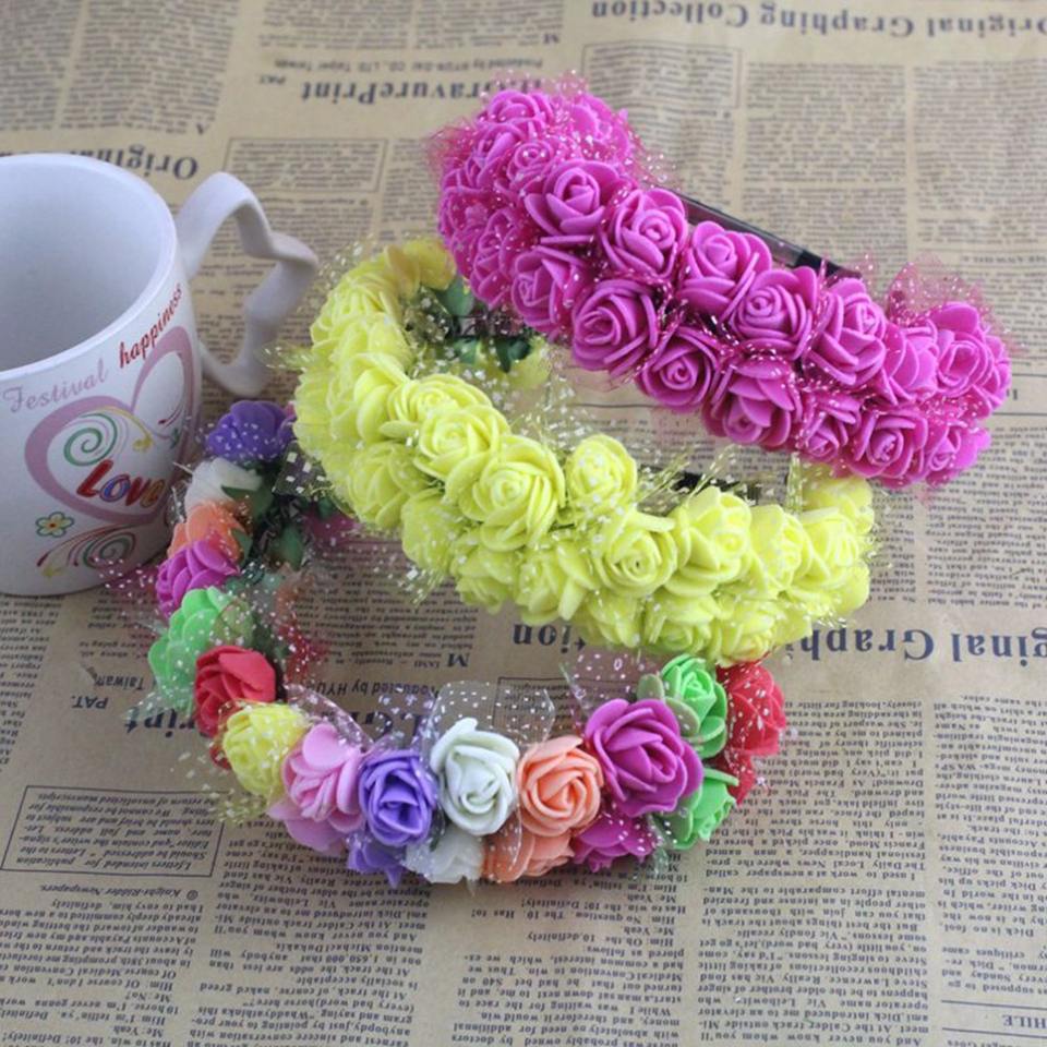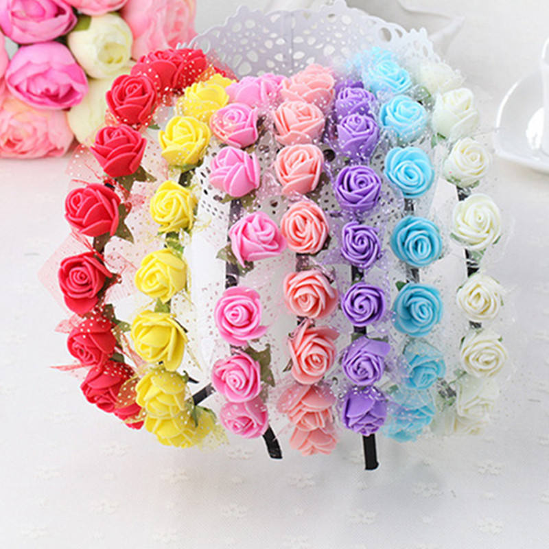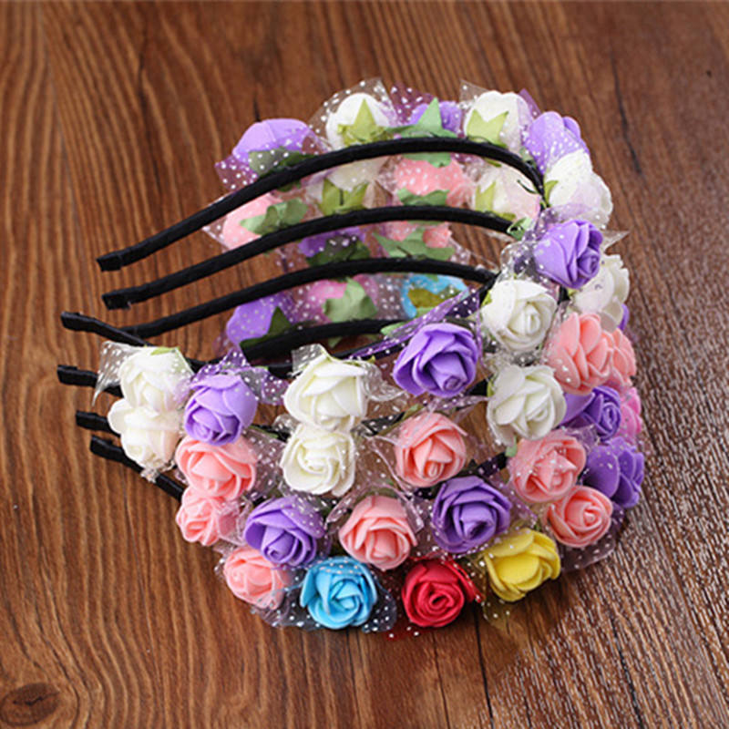 Cross-Border sposa Tulle schiuma corona di fiori da donna fotografia di matrimonio accessori per capelli per bambini principessa fiore fascia