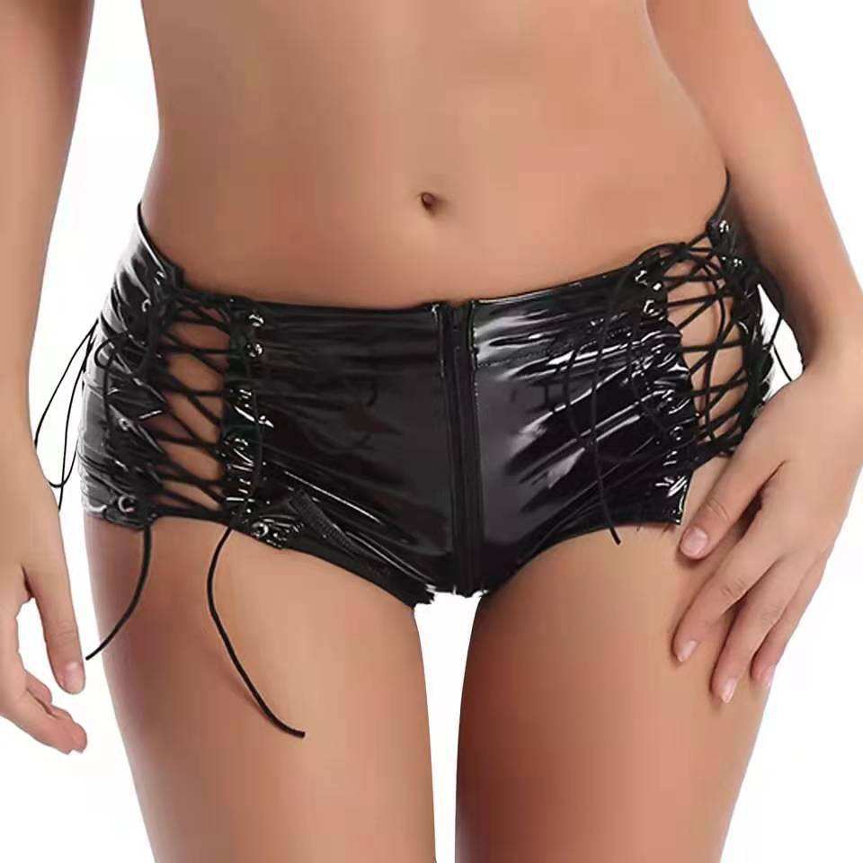 Shorts Erotici in Pelle PVC Lucida Stile Europeo-Americano con Cerniera sulle Natiche, Vestibilità Regolare