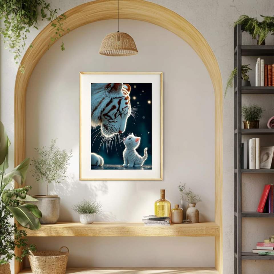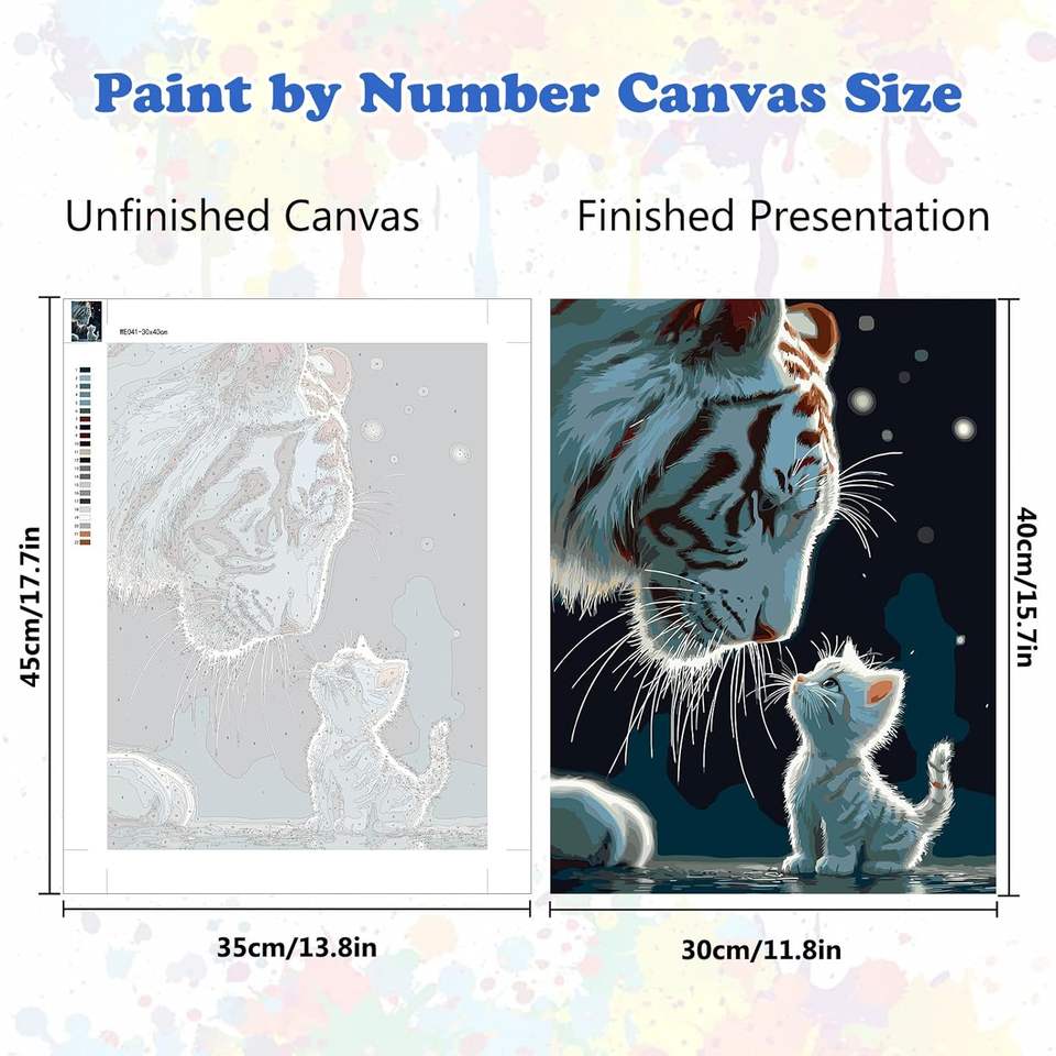 Kit Pittura Acrilica Fai-da-te Fatto a Mano con Strumenti per Disegno, Tema Tigre e Gatto, per Pittura Digitale a Olio, Bestseller Transfrontaliero