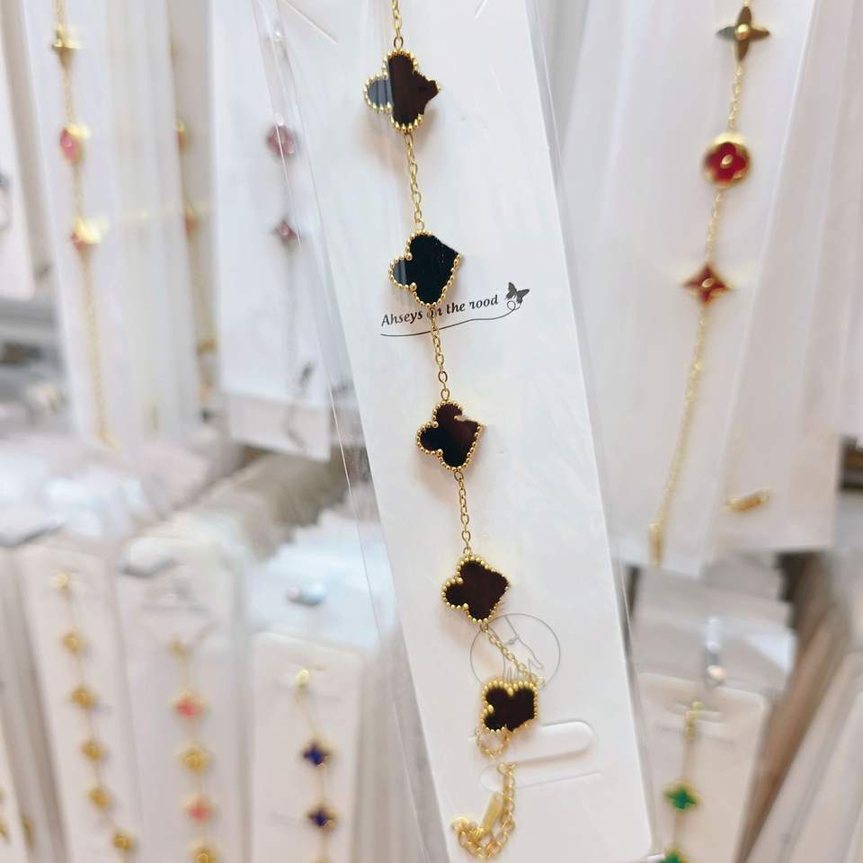 LUYU Bracciale donna LUYU-SYE-00001 cinque fiori e quadrifoglio, pietra naturale, placcatura antiscolorimento, alta gamma