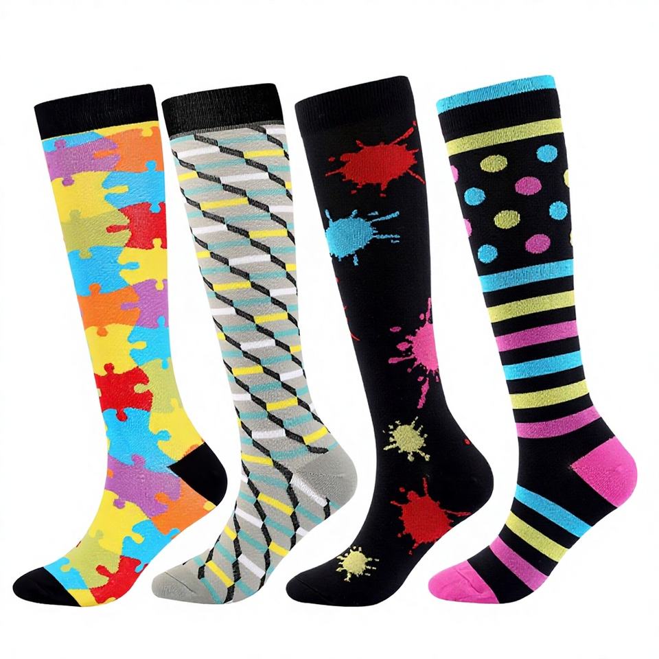 Set di Calze a Compressione in Nylon per Sport e Corsa, Vendita Transfrontaliera, Combinazione Libera, Sopra il Ginocchio