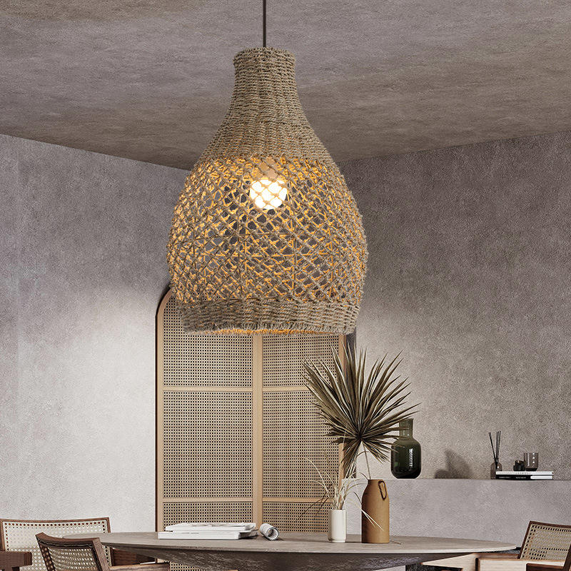 Transfrontaliera giapponese stile Wabi Sabi Vintage Hotel sala da pranzo soggiorno camera da letto intrecciata sala da tè LED lampada pendente in Rattan Zen
