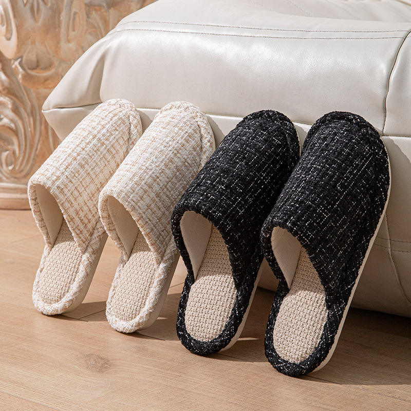 Pantofole in Lino con Design Silenzioso Antiscivolo per Primavera e Autunno, Nuove Ciabatte Morbide in Cotone e Lino per Casa