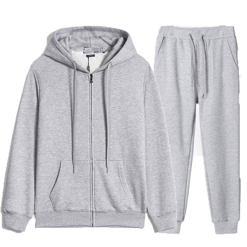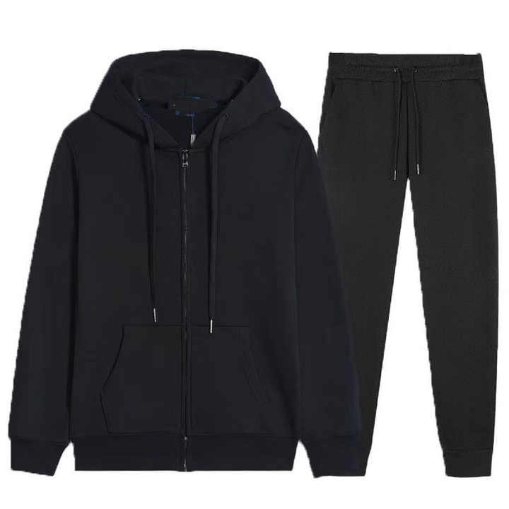 Cross-Border Men's Autumn Winter Hoodie Fleece Suit Embroidered Printed Logo Long Length Zipper Shirt Sweater