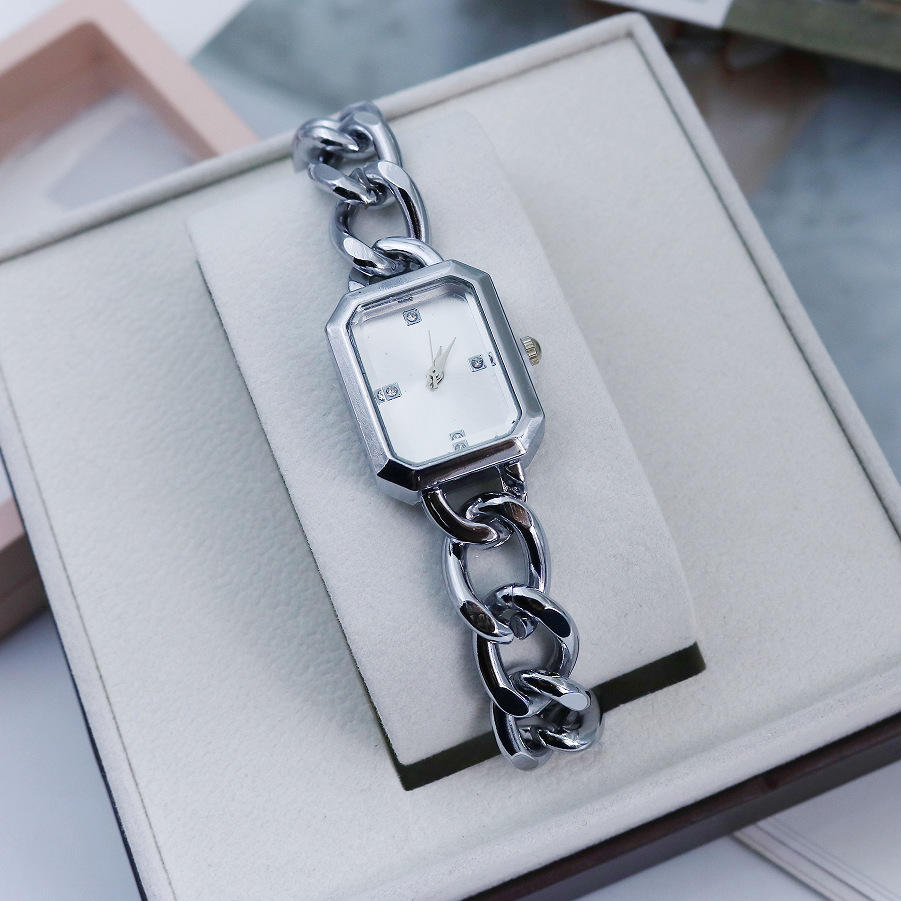 Incrociato confine nuova nicchia semplice da donna bracciale al quarzo con diamante quadrato ritorto cinturino in lega di zinco 10mm quadrante in vetro