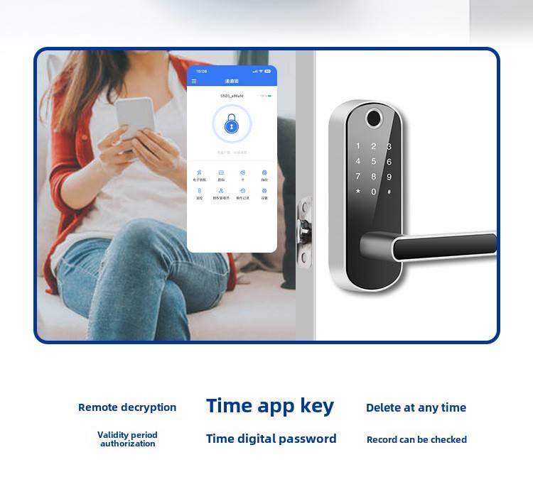 Serratura Intelligente per Porte Interne in Legno per Commercio Internazionale a Scrocco Singolo con Impronta Digitale Password Accesso Remoto WiFi in Lega di Zinco Senza Perforazione
