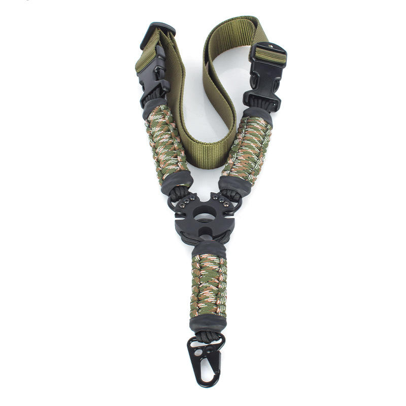 Cinghia Tattica Multifunzionale per Armi con Moschettone a Punto Singolo Verticale in Nylon Intrecciato Stile Americano per Uso Esterno