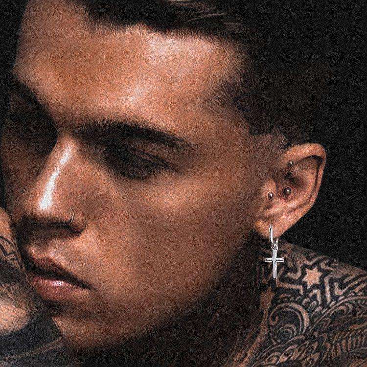 Cross Huggie Hinged Earrings 925 Sterling Silver Hip Hop Jewelry 14K White Gold Plated Dangle Drop Hoop Earrings for Women Men