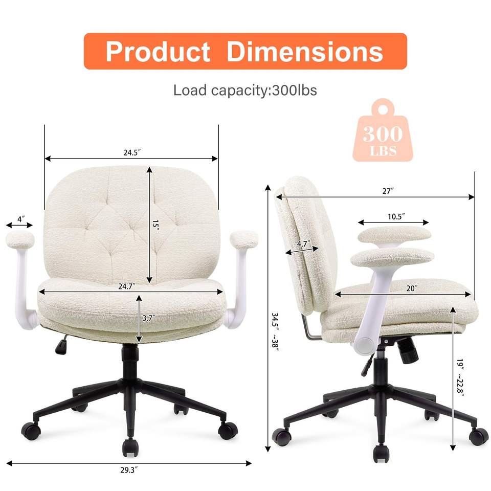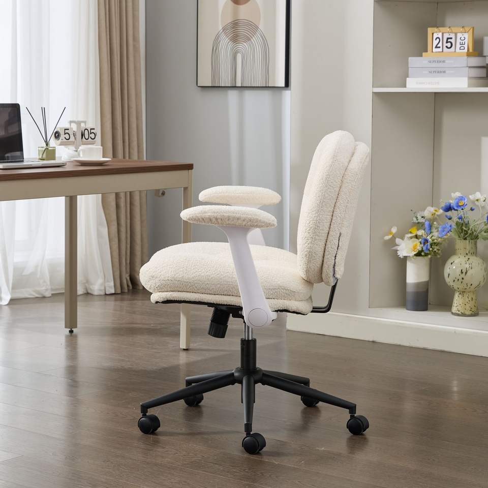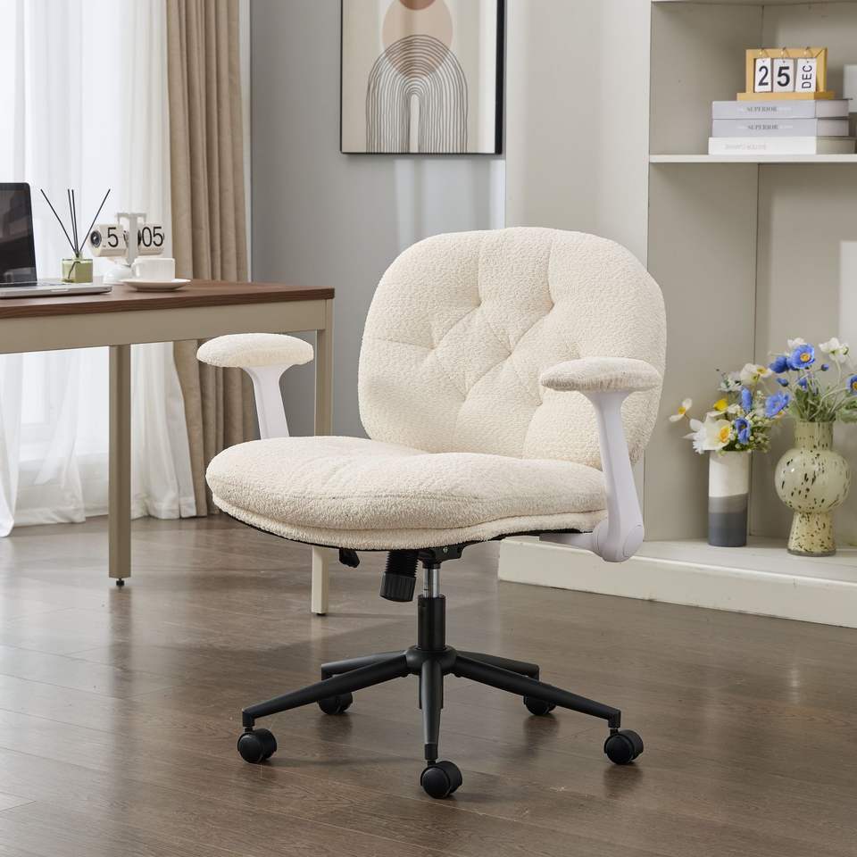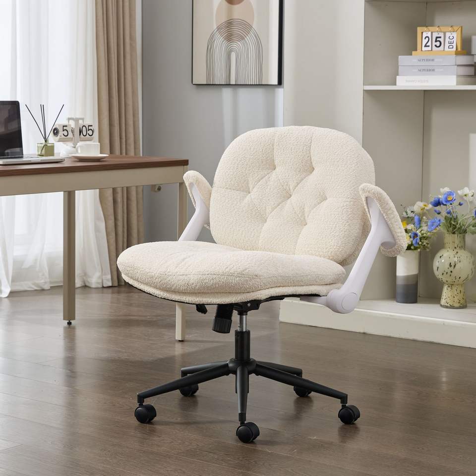 Sedia da Ufficio con Gambe Incrociabili, Braccioli Ribaltabili e Ruote, Comoda Sedia Girevole con Seduta Larga per Donne
