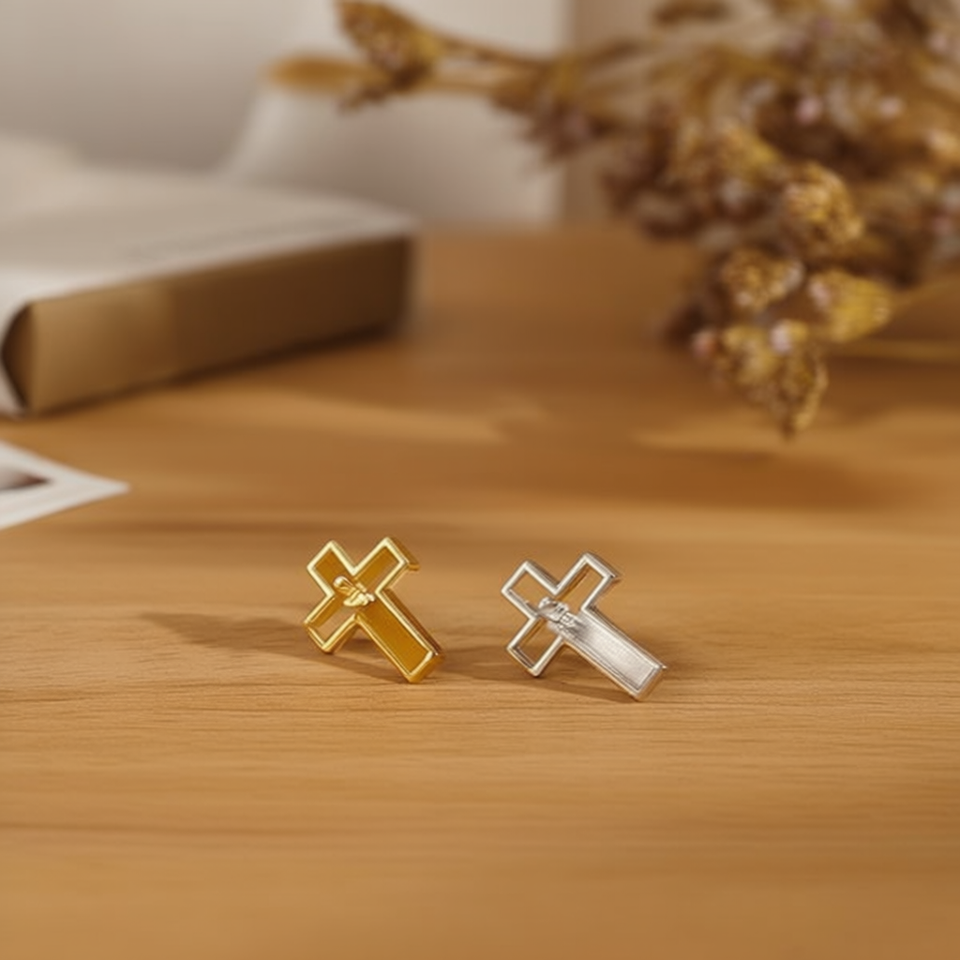 Orecchini a croce in acciaio inossidabile fatti a mano 6mm tono oro e argento gioielli alla moda