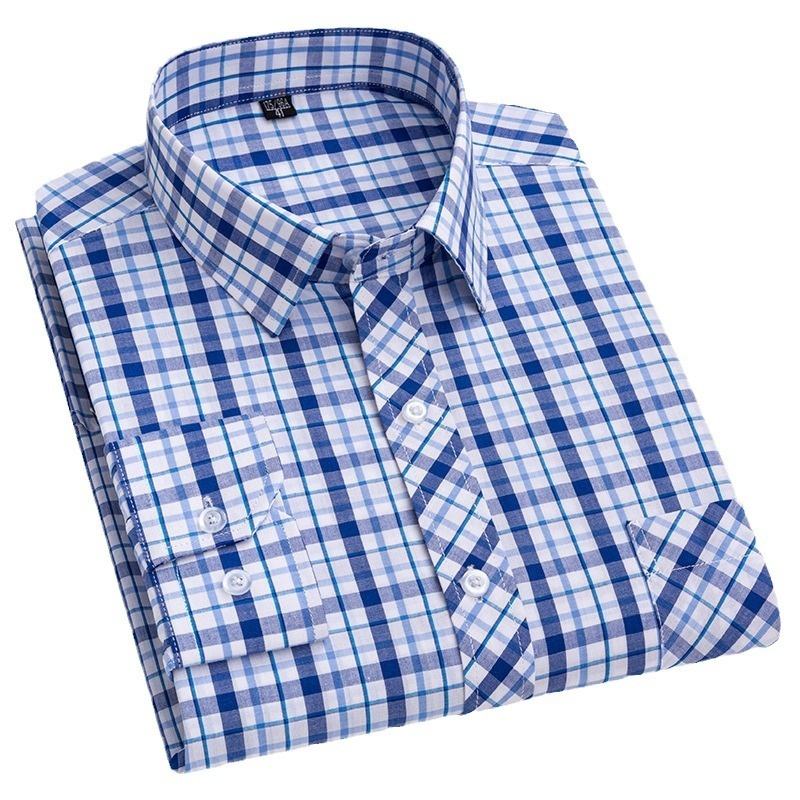 Camicia Casual da Uomo a Maniche Lunghe in Cotone Puro con Colletto Quadrato e Motivo a Quadri, Sottile, Lavabile in Lavatrice, Collezione Primavera 2026 - Spedizione Internazionale
