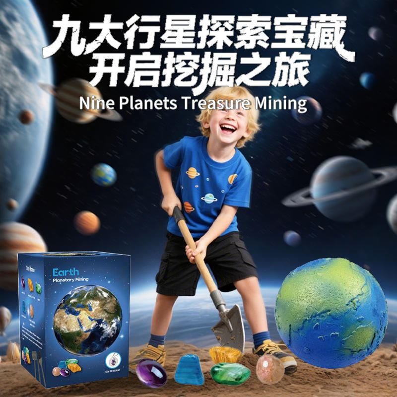 Gioco Educativo per Bambini Esclusivo per l'Esportazione: Scavo Archeologico del Sistema Solare con Nove Pianeti in Legno, Kit di Scavo Gemme in Confezione Colorata