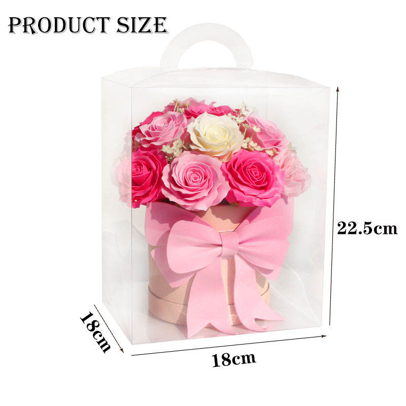 Regalo Transfrontaliero per Fidanzata, Fiori di Sapone a Rosa in Amido di Mais, Moderni, Fatti a Mano, con Stile Goffrato, in Confezione a Secchiello 'Hug Bucket', Bomboniera per Matrimonio