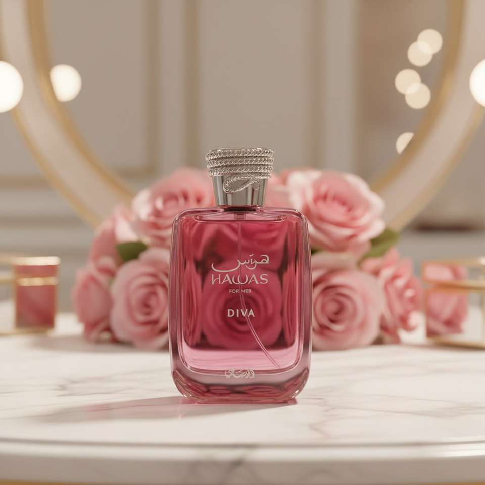Profumo RASASI Hawas Diva Eau De Parfum Rosso Vino, Fragranza Floreale Universale di Lunga Durata, Bestseller Transfrontaliero del Medio Oriente e Dubai