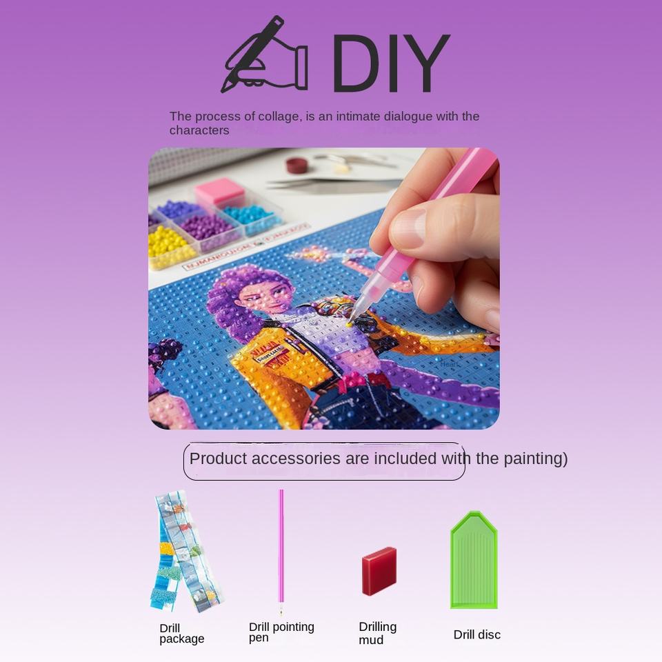 Kit Pittura Diamante Fai-da-Te con Cornice, Gruppo di Ragazze Streghe, Vendita Transfrontaliera