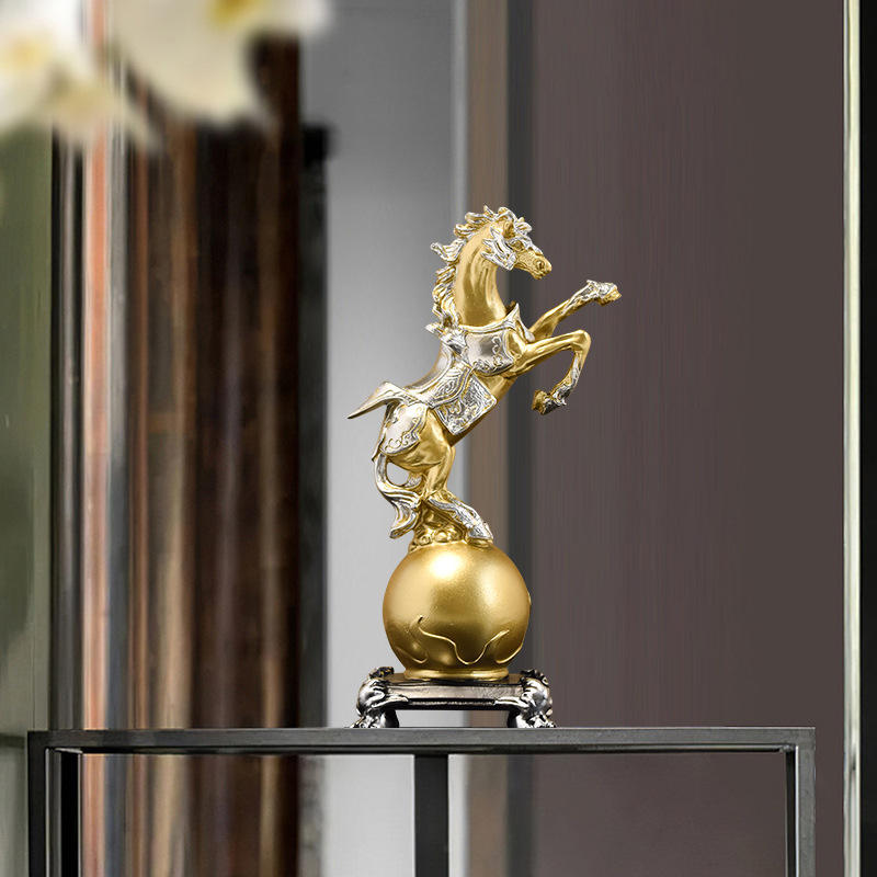 Statuetta artigianale in resina di vendita calda transfrontaliera, piccolo destriero dorato, scultura domestica, decorazione di armadietti di liquori da tavolo, regalo.