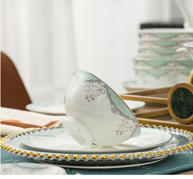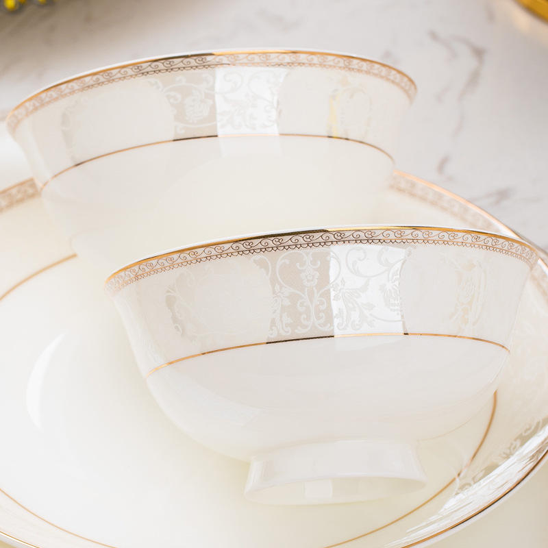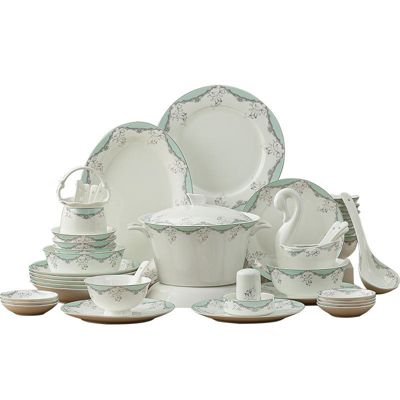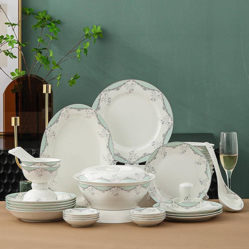 Set di Stoviglie in Porcellana Bone China di Jingdezhen, Design Moderno e Semplice, Lusso Discreto, Ciotole e Piatti per Casa, Adatto al Microonde, Confezione Regalo