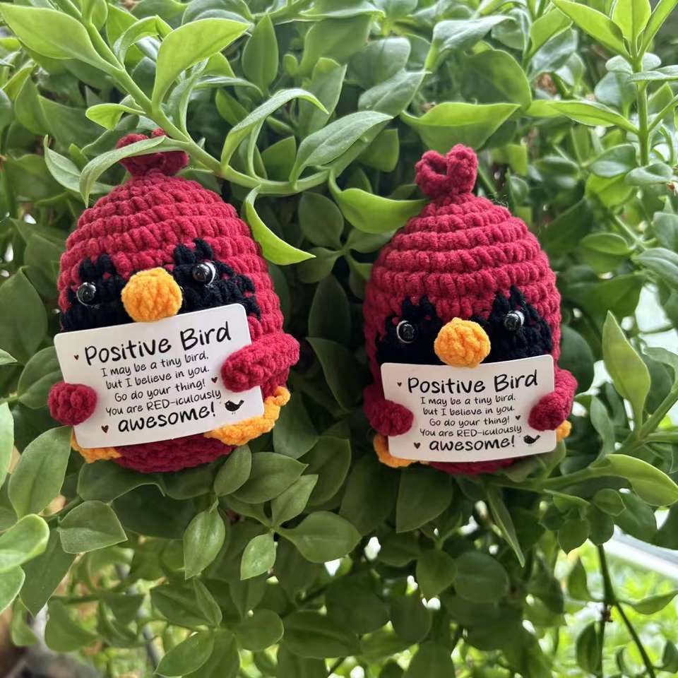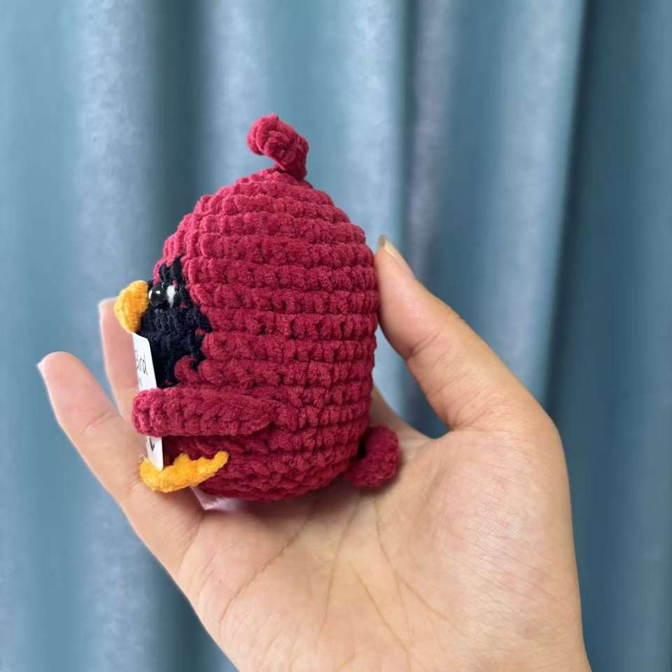 Nuovo Ciondolo Artigianale in Cotone all'Uncinetto a Forma di Piccolo Uccellino Rosso con Energia Positiva e Cartellino, Regalo Transfrontaliero per Uomini