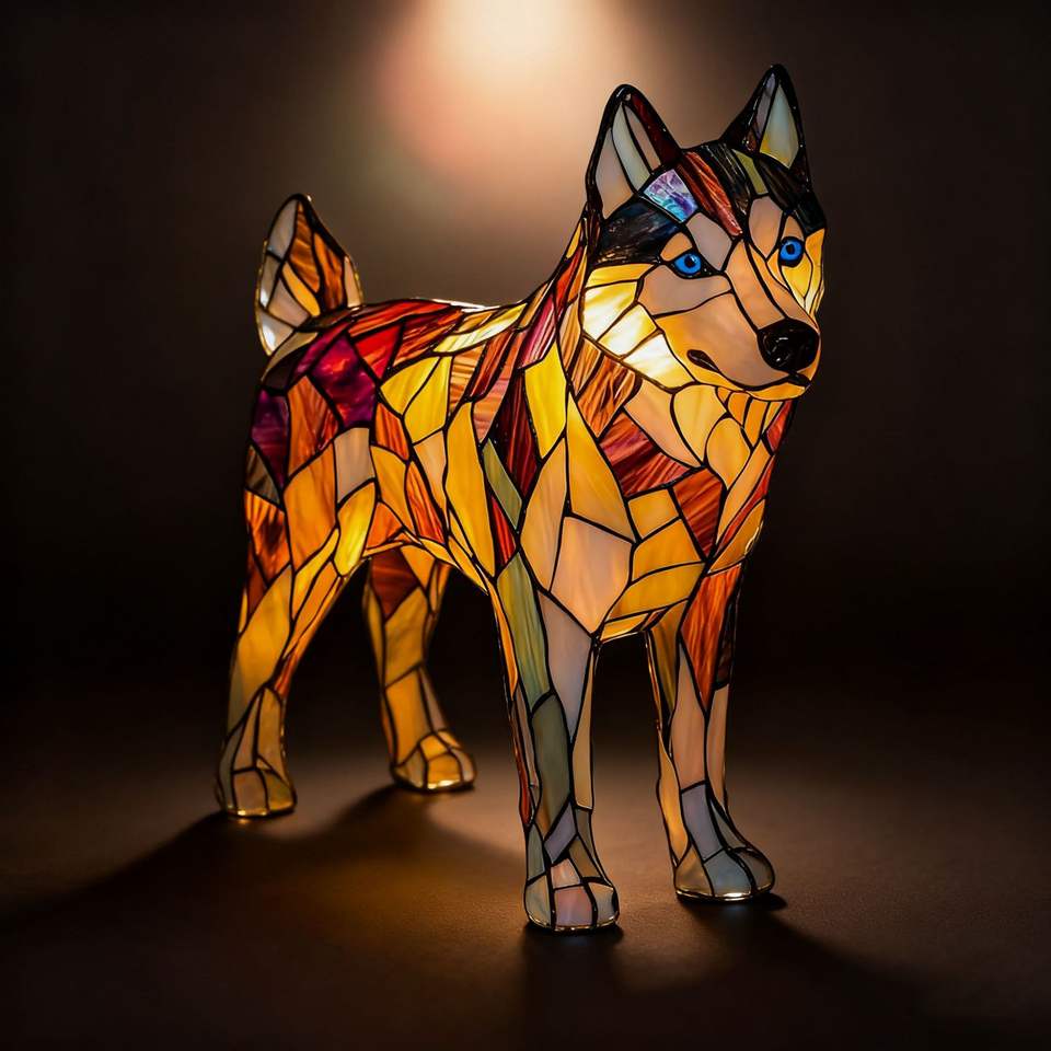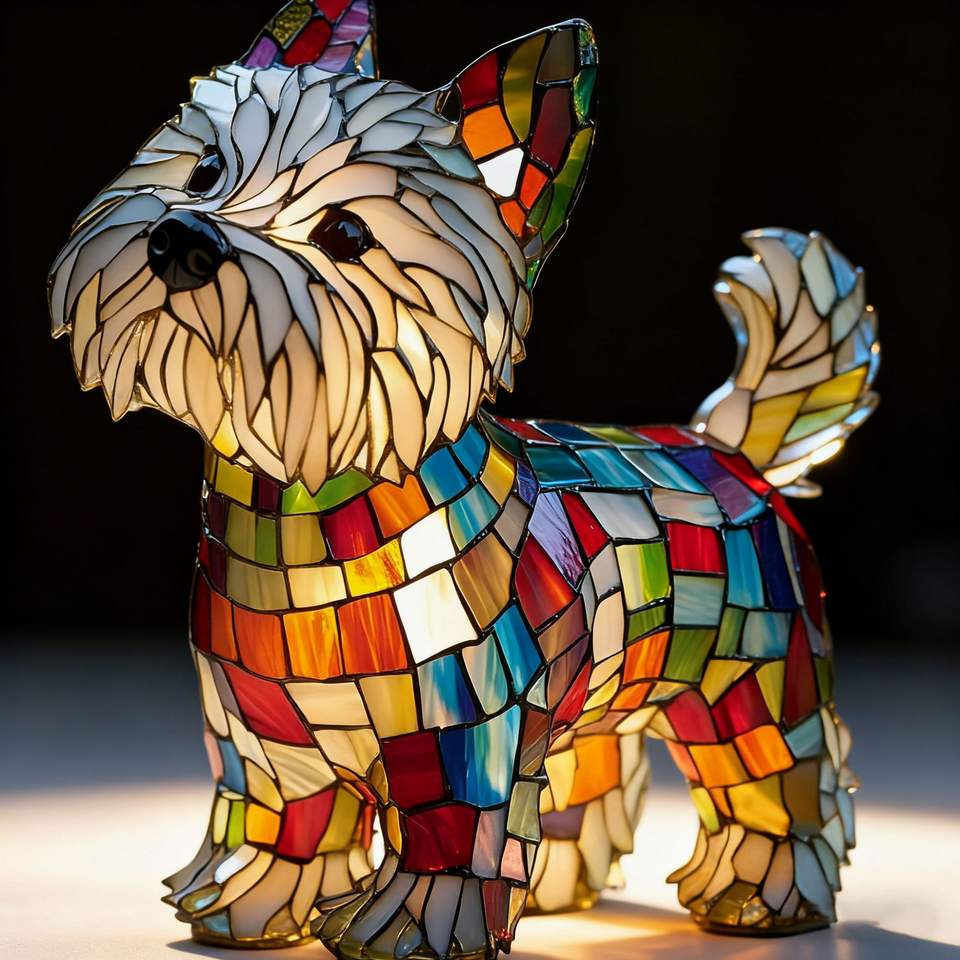 Ornamenti in Resina Transfrontalieri, Luce Notturna a LED, Serie Cani Luminosi, Mosaico in Vetro Colorato, Statua Animale Artistica, Decorazione Creativa per Casa e Scrivania