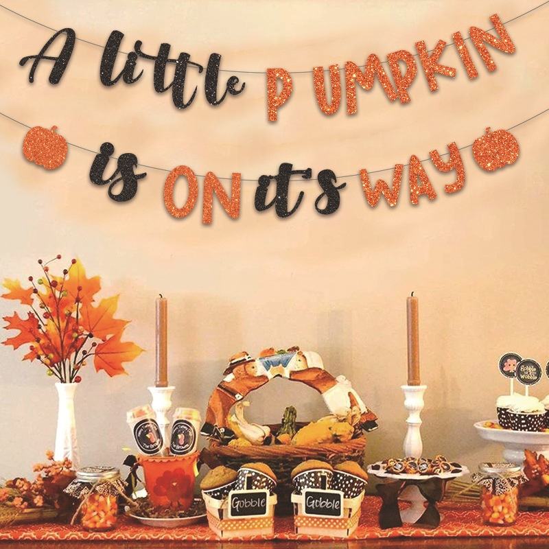 Striscione a Forma di Zucca per il Ringraziamento, Decorazione per Feste con Design 'A Little Pumpkin Is on Its Way'