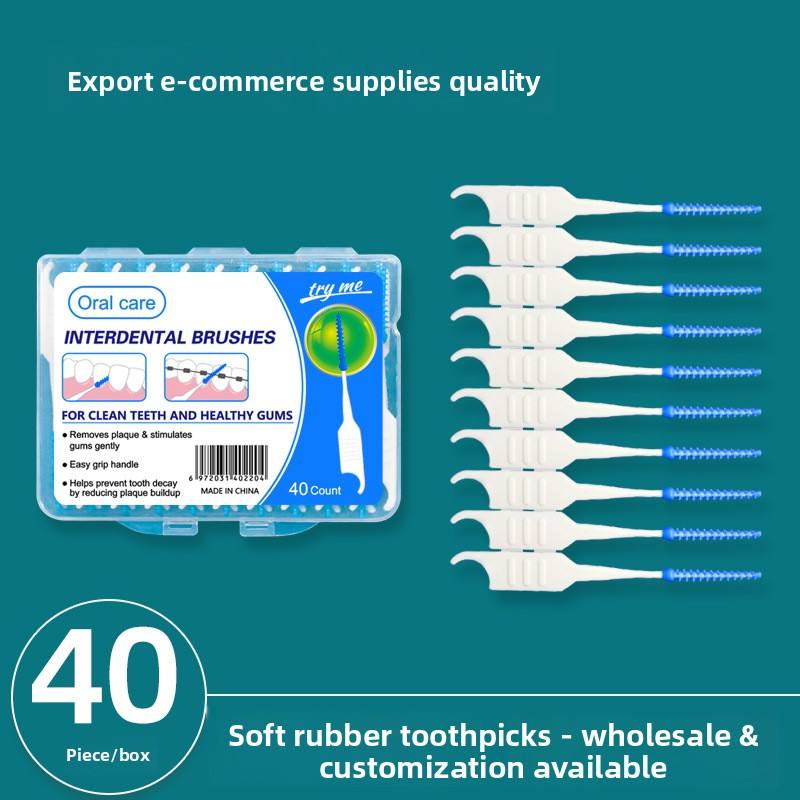 Spazzolino Interdentale per Spazi tra i Denti, 40 Pezzi, in Gomma Morbida con Impugnatura Facile da Impugnare, per Pulizia Orale e Rimozione della Placca Gengivale