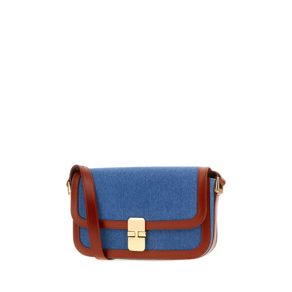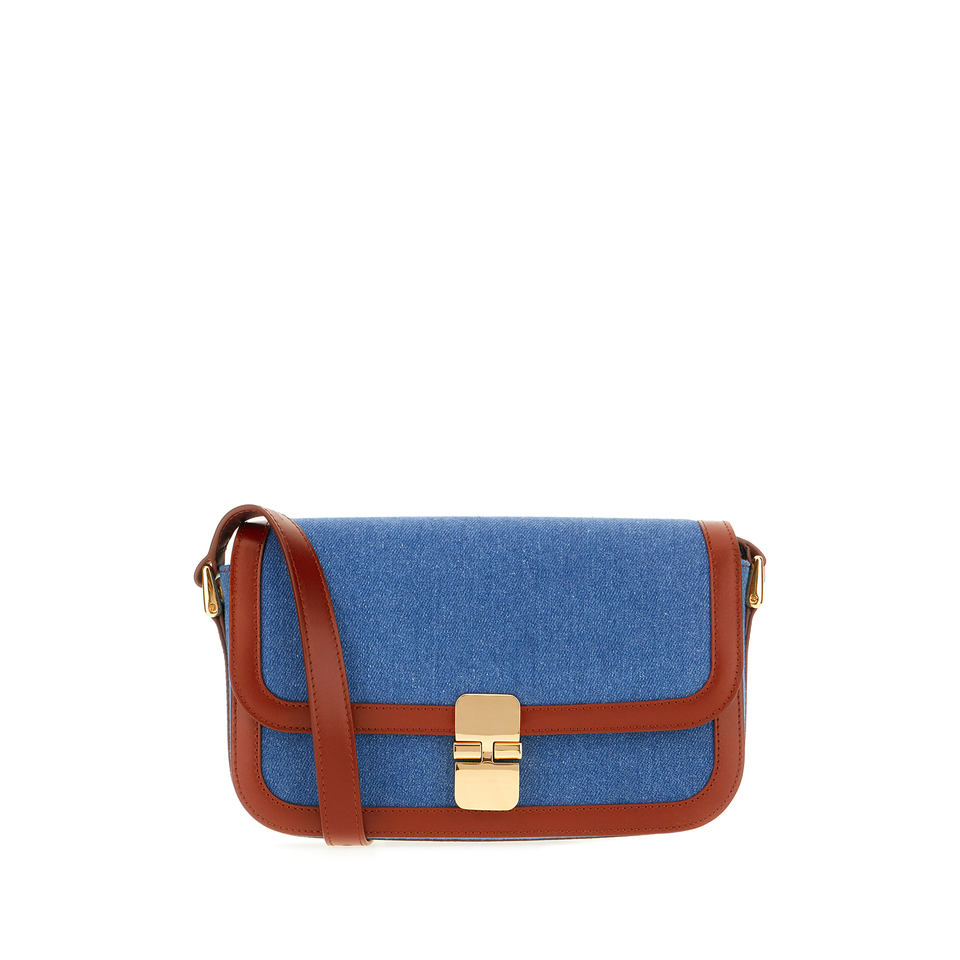 Crossbody Bag Realized in Smooth Bovine Leather and Denim Characterized by Printed logo at the Back. -Adjustable Leather Shoulde