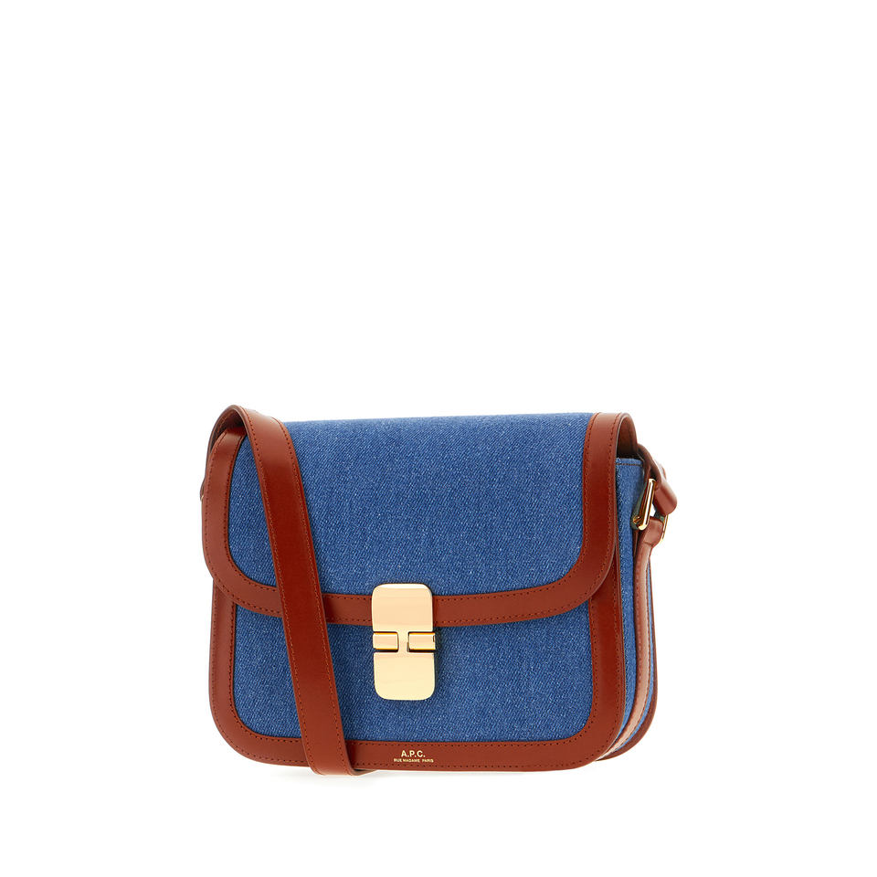 Crossbody Bag Realized in Smooth Bovine Leather and Denim Characterized by Printed logo at the Front. -Adjustable Leather Should