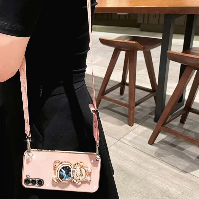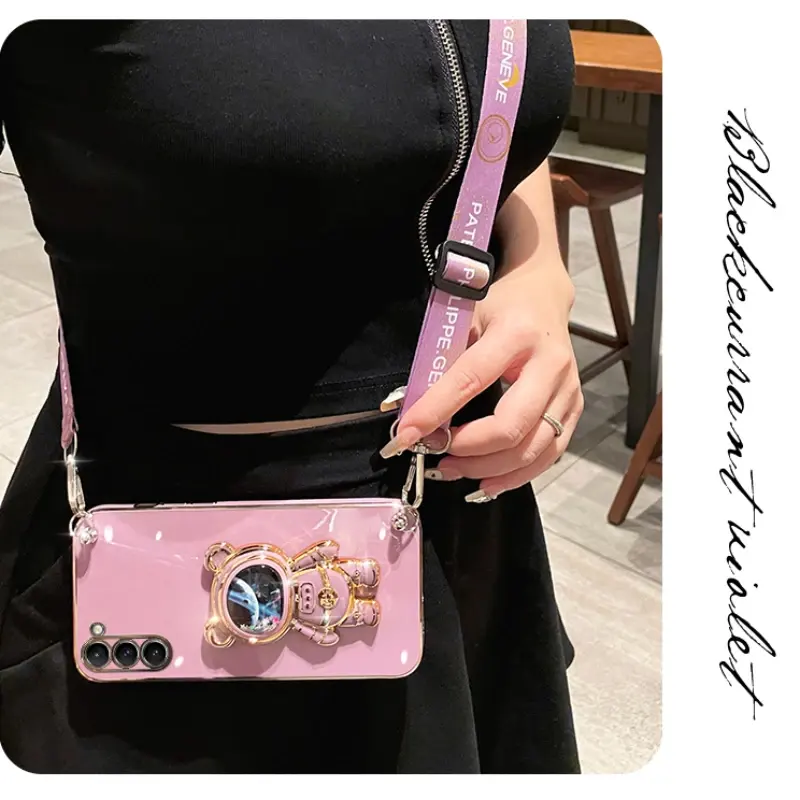 Material:Crossbody Lanyard Quicksand space bear Plating Case