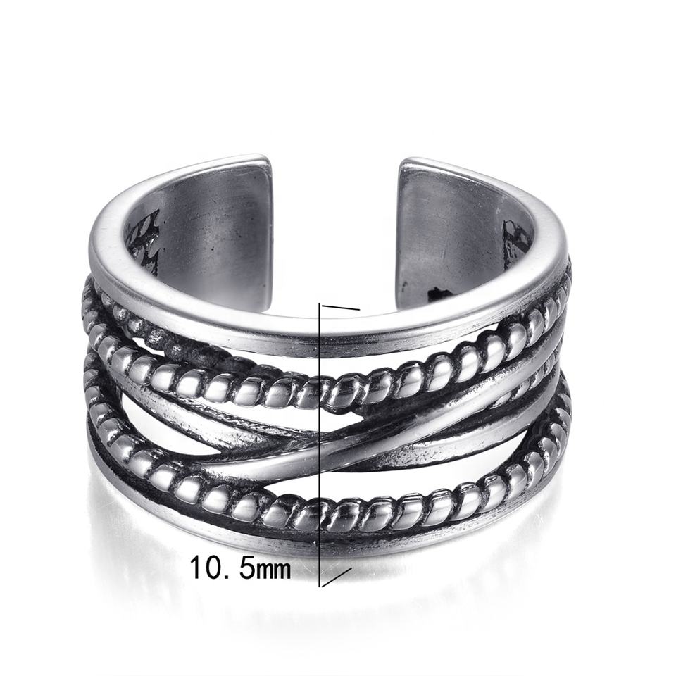 Anello Intrecciato in Argento Sterling 925, Fascia Ossidata Aperta per Dita Intermedie, per Donne, Uomini e Coppie