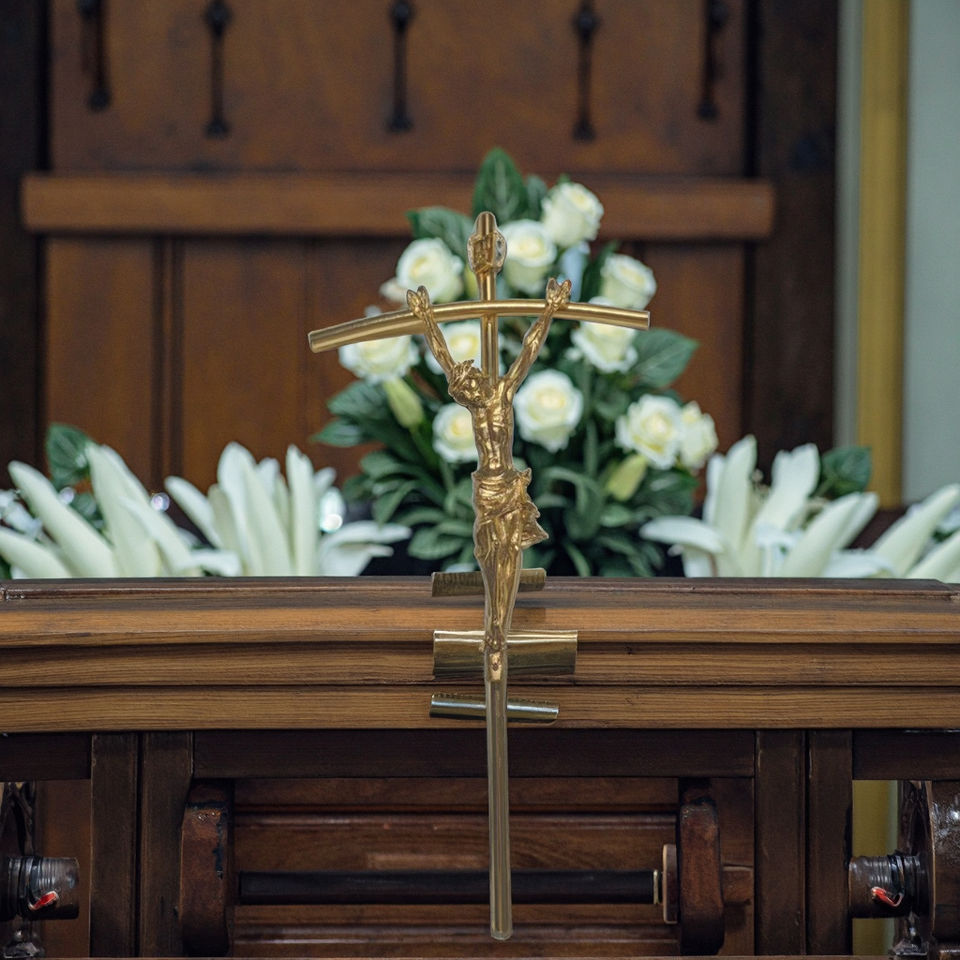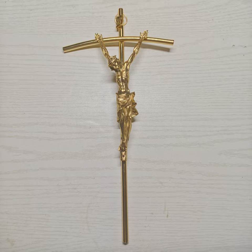 Scultura in Metallo a Forma di Crocifisso Placcata Oro, Incisa e Stampata, Artigianato in Fusione per Decorazioni Natalizie e per Casse Funebri Yu Yan